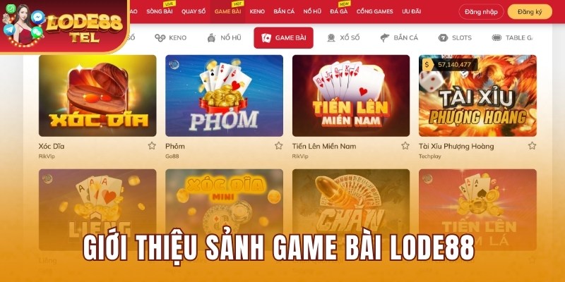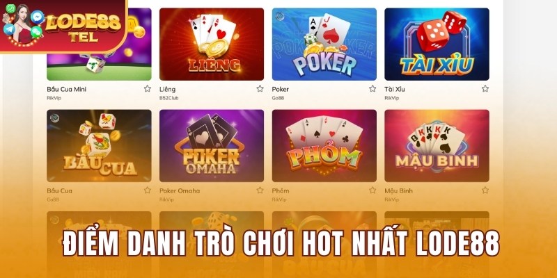 Sân chơi game bài Lode88 đem đến gần 100 phiên bản game đổi thưởng trực tuyến hấp dẫn, quen thuộc với người chơi Việt Nam. Bên cạnh đó, hệ thống tích hợp thêm các siêu phẩm nổi bật tại các sòng bạc trực tuyến như: Sicbo, Baccarat, Poker,…